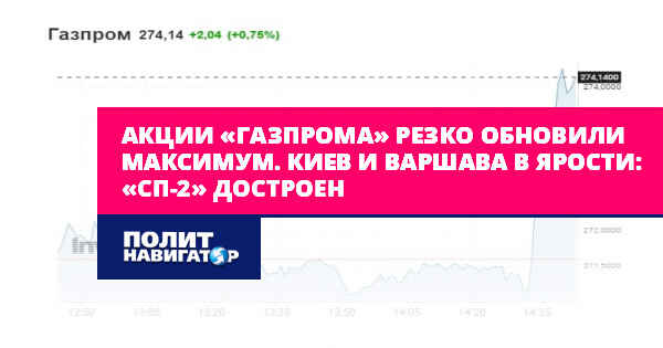 Акции «Газпрома» резко обновили максимум. Киев и Варшава в ярости: «СП-2» достроен