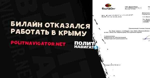 Ведущий российский оператор ПАО «ВымпелКом», предоставлявший услуги мобильной связи под брендом «Билайн», как и прежде, не планирует работать в Крыму. Об этом можно, судить исходя из письма директора по обеспечению операторской деятельности ПАО «ВымпелКом» Марины Аллагуловой в ответ на запрос депутата Симферопольского городского совета Республики Крым Степана Кискина.