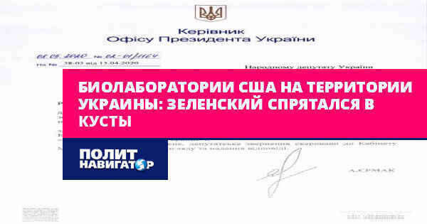 Биолаборатории США на территории Украины: Зеленский спрятался в кусты