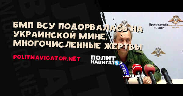 Из-за несогласованностью родов войск украинской группировки в Донбассе на собственном же минном поле подорвалась БМП, транспортирующая личный состав. Взрыв привёл к многочисленным жертвам.