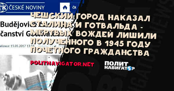 Члены городского совета чешского  города Ческе-Будеёвице приняли решение о лишении звания «Почётный гражданин города» бывшего советского лидера Иосифа Сталина и экс-президента коммунистической Чехословакии Клемента Готвальда.