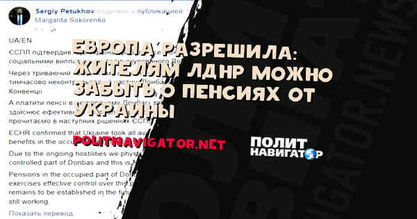 Европейский суд по правам человека (ЕСПЧ) признал право Украины не выплачивать пенсии на неподконтрольных Киеву частях Донецкой и Луганской областей, передает корреспондент “ПолитНавигатора”.