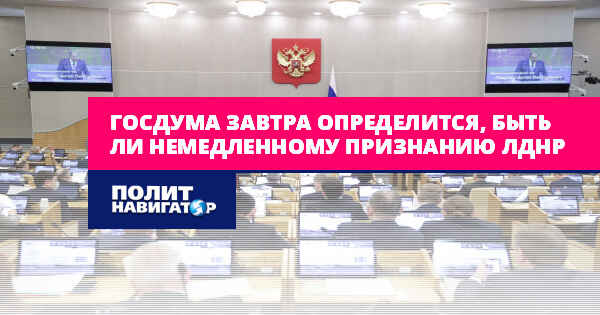 Завтра на заседании Госдумы будет решено, признавать ли ЛДНР немедленно, или дождаться выводов от МИД и других правительственных структур.