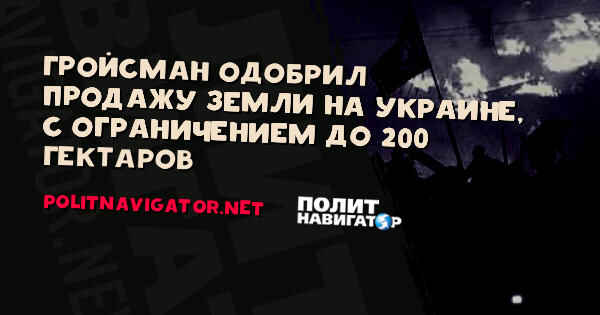 Премьер-министр Украины Владимир Гройсман считает, что в рамках земельной реформы является абсолютно возможным допуск продажи украинцами земли друг другу в пределах 200 га.