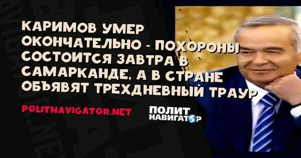 Каримов умер окончательно – похороны состоятся завтра в Самарканде, а в стране объявят трехдневный траур