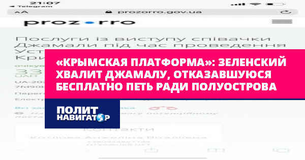 Зеленский же похвалил Джамалу за песню, которая якобы напоминает о депортации крымских татар с территории полуострова в 1944-м году.