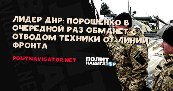 Петр Порошенко, вероятнее всего, в очередной раз обманет с отводом техники от линии фронта на Донбассе. Об этом на пресс-конференции в Донецке заявил лидер ДНР Александр Захарченко, передает корреспондент “ПолитНавигатора”.