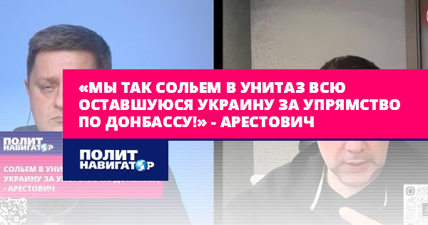 Не россияне, во внутреннем конфликте, в гражданской войне, в невозможности жить в этой Украине просто физически из-за лишения инфраструктуры, промышленности и всего остального. Об этом не подумали, что оставшиеся 80% Украины за 2 оставшихся процента Донецкой области можем слить в унитаз», – заявил Арестович.