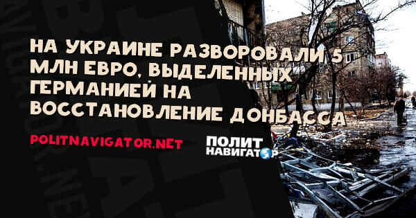 На Украине разворовали 5 миллионов евро, выделенных Германией на восстановление Донбасса – Берлин требует...