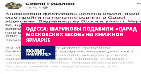 «Какой-то парад московских бесов последнее время происходит с их выходками», — пожаловался глава Южного межрегионального отдела Украинского института национальной памяти Сергей Гуцалюк-Шариков, описывая ситуацию в Одессе. «Одни ватные сепары», «это они статьи Путина начитались», «гыдота», «коллаборанты», «бойкот!» — подобные «допысы» полились изо всех щелей, в которые только способна проползти патриотическая общественность.