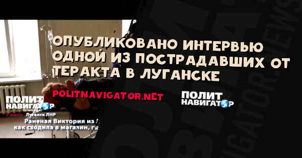 Военкор Семен Пегов опубликовал отрывок интервью жительницы Луганска Виктории, одной из пострадавших от теракта в столице ЛНР, когда возле магазина и кафе, где обычно бывают военные, взорвалась бомба.