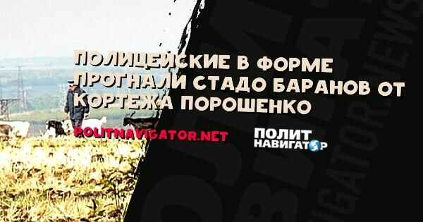 Журналисты, освещавшие сегодняшний визит Петра Порошенко в Одесскую область, стали свидетелями, как украинские полицейские в форме прогоняют стадо баранов подальше от места, куда должен прибыть президентский кортеж.