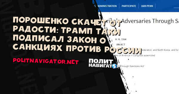 Президент США Дональд Трамп подписал скандальный закон №3364 “О противодействии противникам Америки посредством санкций”...