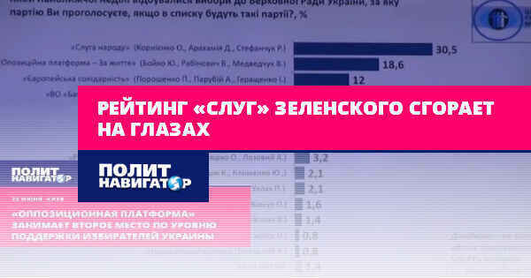 Если бы выборы в Верховную Раду проводились в ближайшее время, 30,5% опрошенных проголосовали бы за «Слугу народа», 18,6% – за «Оппозиционную платформу – за жизнь», 12% – за «Европейскую солидарность», 9,7% – за ВО «Батькивщина».