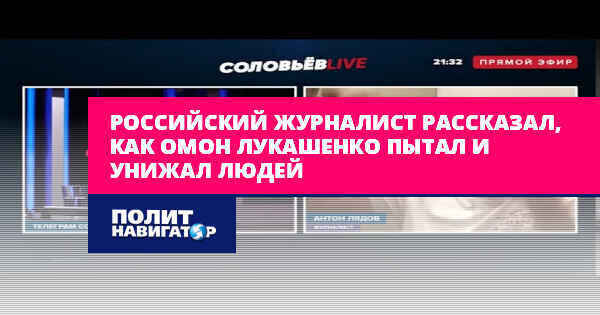 Белорусский ОМОН в дни разгона оппозиционных акций хватал случайных прохожих и журналистов, после чего жестоко пытал и унижал задержанных, в том числе инвалидов и женщин. О подробностях пережитого в интервью телеведущему Владимиру Соловьеву рассказал российский журналист Антон Лядов.