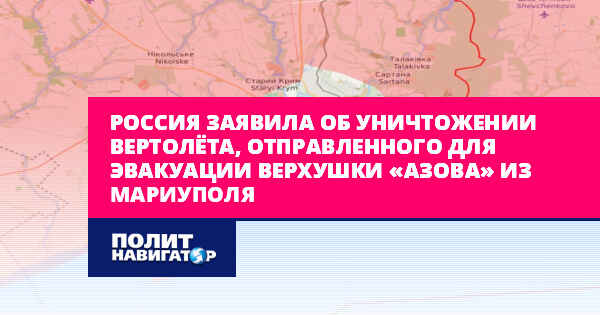 Над Азовским морем в несколько километрах от Мариуполя был сбит эвакуационный украинский вертолёт Ми-8, на котором собирались спасаться бегством представители верхушки украинского гарнизона – командование ВСУ и нацистского полка «Азов».