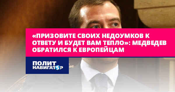 «Призовите своих недоумков к ответу и будет вам тепло»: Медведев обратился к европейцам