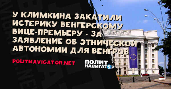 Министерство иностранных дел Украины распространило официальный комментарий в связи с недавним заявлением вице-премьер-министра Венгрии Жолта Шемьена о создании этнических венгерских автономий за рубежом. Подпишитесь на новости «ПолитНавигатор» в Telegram, Facebook, Одноклассниках или Вконтакте Комментарий размещен на сайте ведомства. В заявлении говорится, что “вопрос обеспечения прав национальных меньшинств в Украине не должен использоваться для нагнетания атмосферы…