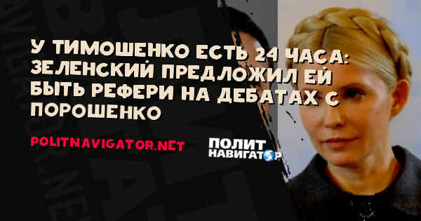 «Для избежания подкупов, провокаций, административного давления, мы предлагаем назначить отдельного независимого арбитра и ведущего для проведения дебатов. Юлия Тимошенко, вы заняли третье место в первом туре и не поддержали ни одного из кандидатов, сможете ли вы стать гарантом честных правил и равных возможностей на дебатах? Ждем ответ на протяжении 24 часов», — сказал Зеленский в видеообращении.
