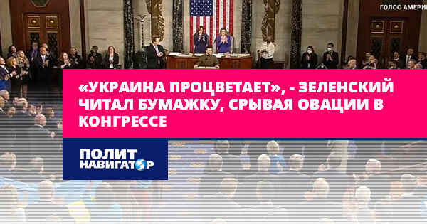 Свою речь Зеленский читал по-английски с бумажки, водя по ней пальцем, чтобы не сбиться. Происходящее напоминало шоу на ТВ, где зрители по команде хлопают в ладоши. Так и в зале Конгресса – американские политики, выслушав громкую фразу гостя, периодически вскакивали с мест и взрывались овациями, несмотря на то, что зачастую Зеленский произносил полный абсурд.