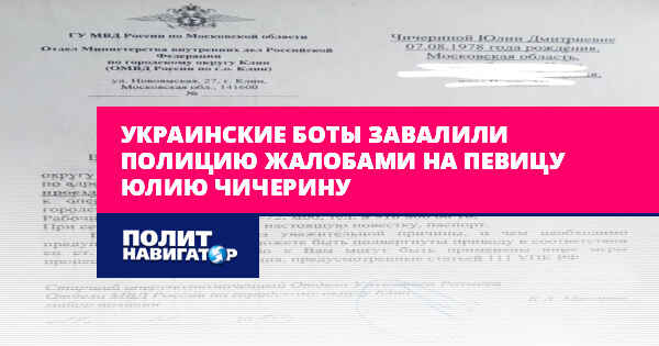 Украинские боты завалили полицию жалобами на певицу Юлию Чичерину