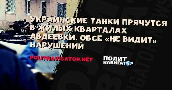 Репортёры фиксируют вопиющие нарушения Минских соглашений украинской стороной – танки ВСУ прячутся в жилых кварталах Авдеевки, создавая угрозу для мирных жителей, что категорически запрещено договоренностями.