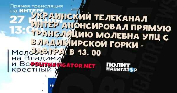 Украинский канал “Интер” анонсировал прямую трансляцию молебна УПЦ с Владимирской горки – завтра, в 13. 00