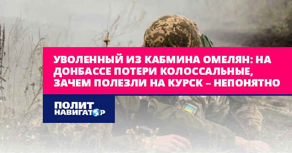 Уволенный из кабмина Омелян: На Донбассе потери колоссальные, зачем полезли на Курск – непонятно