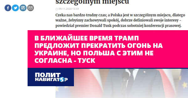 Премьер-министр Польши Дональд Туск после общения с избранным президентом США Дональдом Трампом заявил в эфире «Польского радио» о предполагаемом «плане Трампа» по Украине, Туск предположил, что такой план, вероятно, только на стадии подготовки.