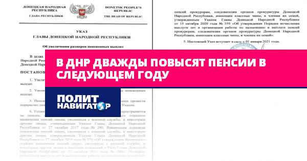 Напомним, ранее Денис Пушилин заявлял о планах к 2022 году повысить пенсии жителям ДНР до уровня Ростовской области. Минимальная пенсия (прожиточный минимум пенсионера) в Ростовской области в 2020 году для расчёта социальной доплаты к пенсии установлен в размере 8736 рублей (прибавка каждому пенсионеру насчитывается индивидуально).