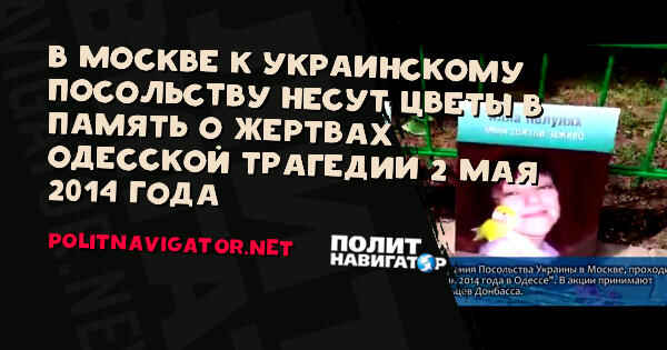 В Москве к украинскому посольству несут цветы в память о жертвах одесской трагедии 2 мая 2014 года