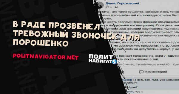 Власть, конечно, не в восторге и на голосование документ старательно не выносят. Но звоночек уже прозвенел, Петру Алексеевичу стоит перестать рассчитывать на депутатский корпус, у них уже есть новый рулевой). Посмотрим как пройдет голосование, если у Парубия все же хватит смелости вынести постановление в зал”, – отмечает Гороховский.
