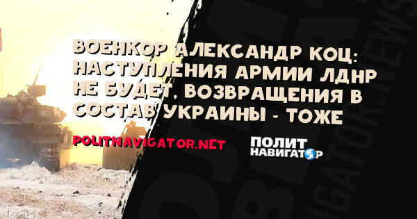Военкор Александр Коц: Наступления армии ЛДНР не будет, возвращения в состав Украины – тоже