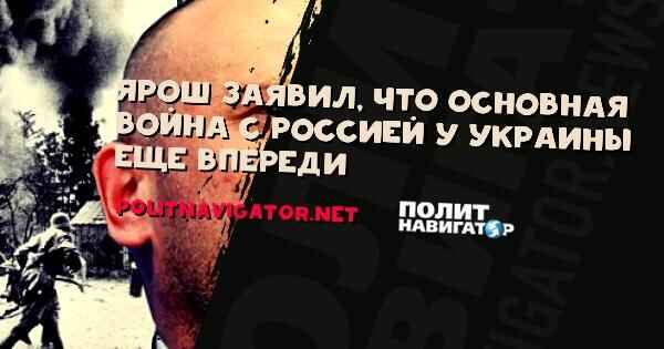 Экс- лидер “Правого сектора” Дмитрий Ярош заявил, что основная фаза войны с Россией еще впереди.