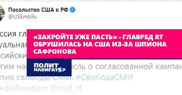 «Закройте уже пасть» – главред RT обрушилась на США из-за шпиона Сафронова