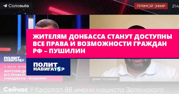Об этом в эфире интернет-канала «Соловьев LIVE» заявил глава ДНР Денис Пушилин, передаёт корреспондент «ПолитНавигатора».