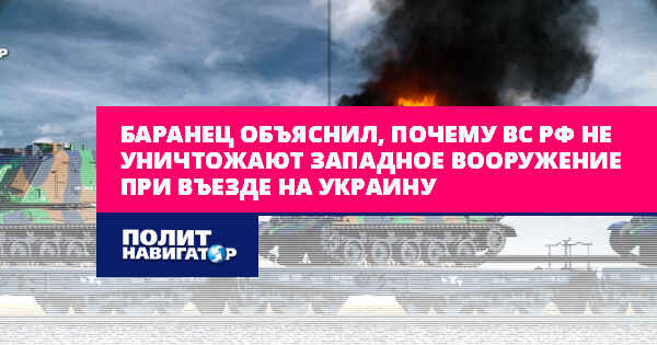 Баранец объяснил, почему ВС РФ не уничтожают западное вооружение при въезде на Украину