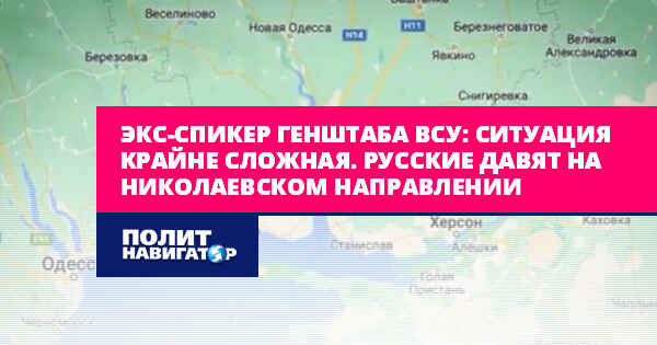 Экс-спикер Генштаба ВСУ: Ситуация крайне сложная. Русские давят на николаевском направлении