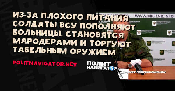 «Украинское правительство продолжает экономить на содержании собственной армии. Так, нам стало известно, что в результате поставок некачественных и просроченных продуктов питания, только за 27 и 28 августа с признаками острой кишечной инфекции в 59 военный медицинский госпиталь доставлены 12 военнослужащих 58 бригады ВСУ. Военнослужащие, брошенные командирами, вынуждены добывать питание всеми доступными способами. В этой связи участились случаи мародёрства, краж, продажи оружия и боеприпасов местному населению»,- сообщил Марочко.
