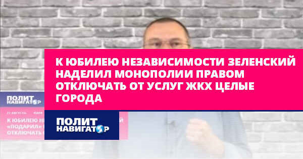 «Он подождал, когда пройдёт День независимости, парад, когда люди будут пьяны от искусственного счастья и не обратят внимание на одну вещь. Вчера им подписан закон, который теперь разрешает монополиям отключать украинцев от тепла, воды, света. Во время карантина. Всё, что было запрещено, он отменил. Они теперь могут отключать жилые дома, посёлки. Вот его настоящее лицо. Вот на кого он работает, когда он рассказывает о том, что он против олигархов», – сказал эксперт.