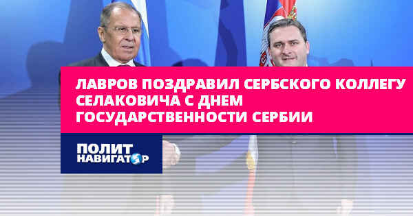 Министр иностранных дел России Сергей Лавров отправил поздравительное письмо с Днем государственности Сербии главе сербского МИД Николе Селаковичу.