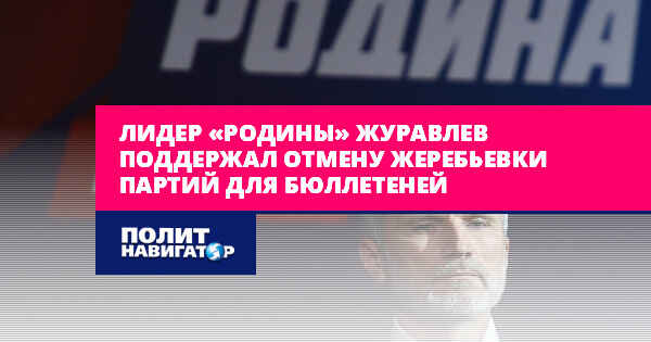 Лидер «Родины» Журавлев поддержал отмену жеребьевки партий для бюллетеней