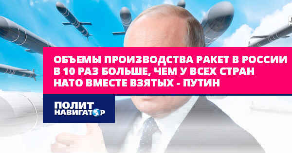 Мы знаем, сколько соответствующим систем находятся на вооружении потенциального противника, сколько на складах, где они конкретно находятся, сколько вооружения поставлено на Украину и сколько планируется поставить. Что касается производства соответствующей техники, то в России оно в 10 раз больше, чем совокупное производство всех стран НАТО вместе взятых. В следующем году это производство будет увеличено на 25-30%», – заявил Путин.