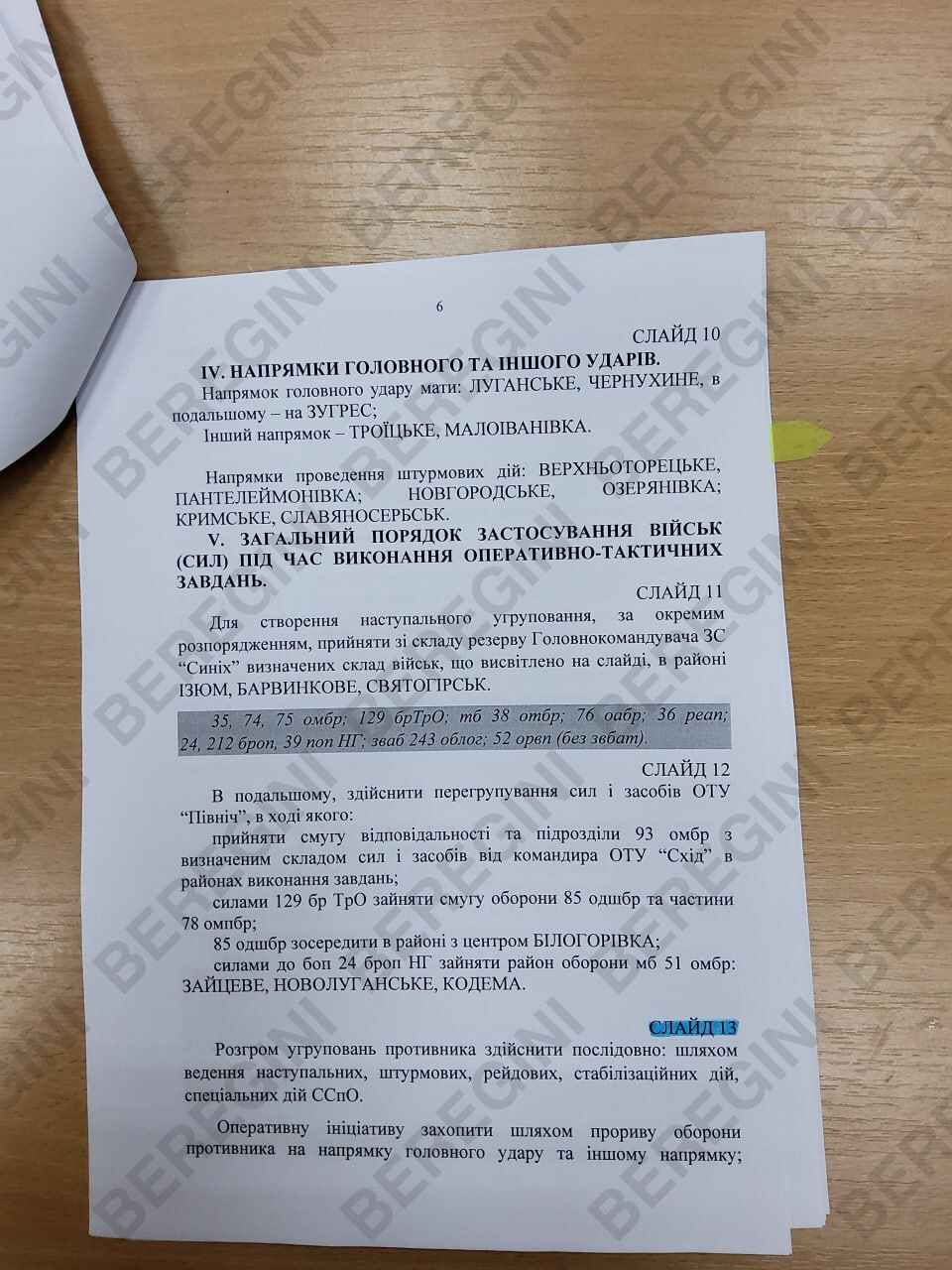 В частности, гласности был передан доклад начальника штаба ОТГ «Север» Петра Ромигайло касательно замысла применения оперативно-тактической группировки.