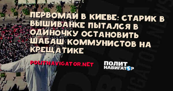 Издание Укринформ добавляет, что когда первомайская колонна шла по Крещатику, дорогу ей в нескольких метрах от Майдана Независимости пытался в одиночку преградить старик в вышиванке с сине-желтым флагом в руках.
