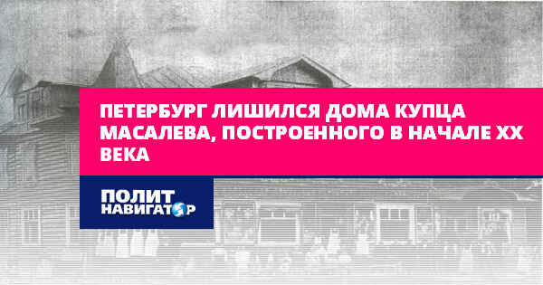 Санкт-Петербург продолжает терять исторический облик из-за попустительства чиновников Смольного и равнодушия губернатора города Александра Беглова. На этот раз Северная столица лишилась дома купца Масалева в поселке Песочный, построенного в начале XX века.
