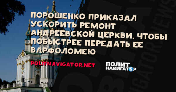 Порошенко приказал ускорить ремонт Андреевской церкви, чтобы побыстрее передать ее Варфоломею