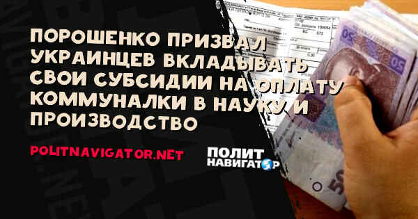 «Давайте, сделаем монетизацию субсидий, чтобы мотивировать человека экономить. Чтобы, если человек сэкономил тепло, часть этих денег выделить человеку. Причем выделить не так, чтобы он пошел и что-нибудь купил, а чтоб он дальше совершенствовал энергопотребление. 50%, например, он может потратить на улучшение энергопотребления в собственной квартире. И так шаг за шагом, год за годом он будет сокращать энергопотребление, финансировать собственные научные разработки и собственное производство в отрасли энергетики», – сказал Порошенко.