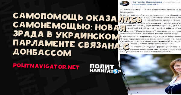 “Самопомощь” оказалась “Самонемощью”: новая “зрада” в украинском парламенте связана с Донбассом