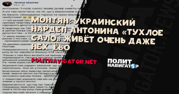 Монтян: украинский нардеп Антонина «Тухлое сало» живёт очень даже нех*ёво